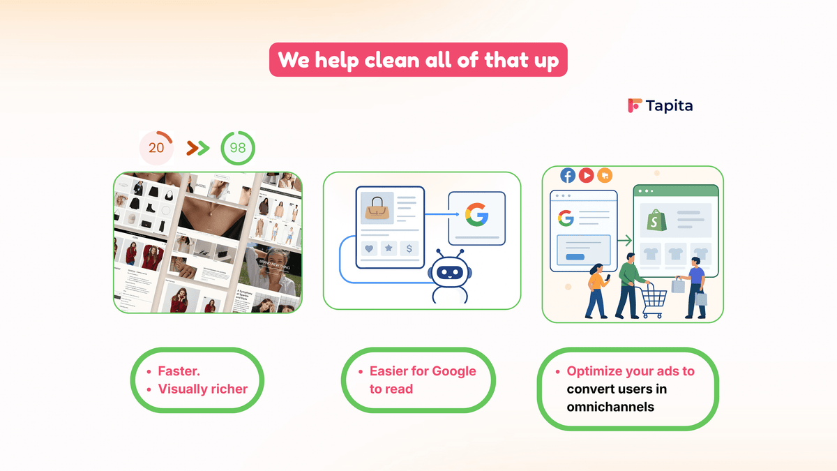 Faster, visual-richer site. Easier for Google to understand. Optimize ads to convert users in omni-channels